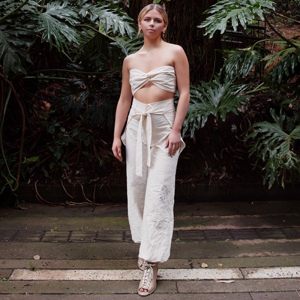 Crop Top Ecológica strapless lazos Natalia Londoño es una prenda con construcción especial, silueta ajustada, centro con detalle especial de diseño cruzado. En la espalda cuenta con lazos que puedes anudar dependiendo de la medida de tu torso y busto. Esta pieza puedes usarla de diferentes maneras según tu gusto (strapless con lazo en posterior o envolverla atrás y adelante)