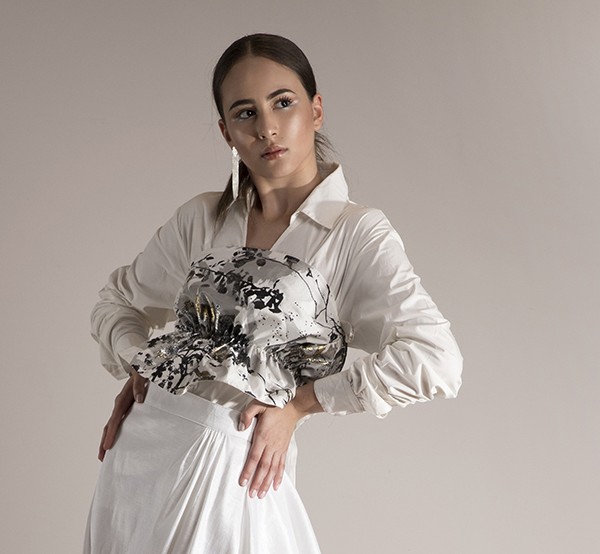 Crop Top Grafía strapless textura Natalia Londoño es una prenda con construcción especial, volumen orgánico y construcción femenina, cuenta con strapless ajustado interno y volumen especial que define tu cintura de forma sutil.