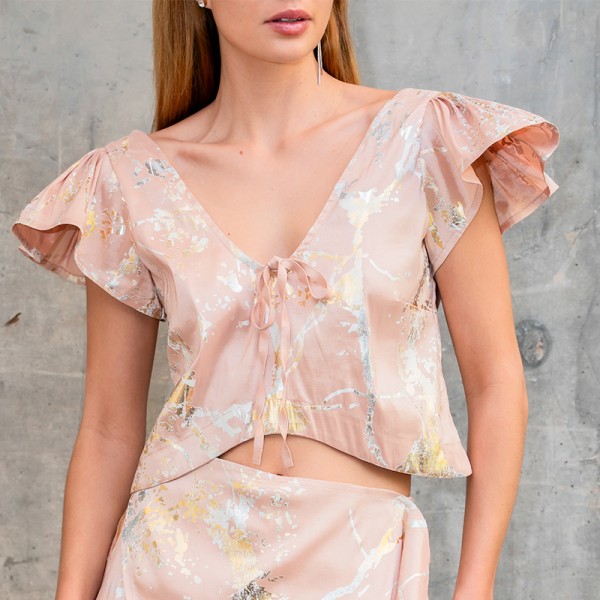 Top Renace escote u volumen mangas textura TRE1