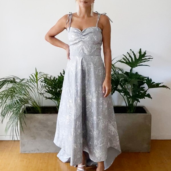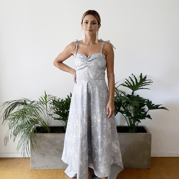 Vestido Hábitat maxi strapless textura Natalia Londoño es una prenda con construcción especial, volumen orgánico ajustado que define tu silueta en busto y cintura, corte asimétrico inferior con falda tipo capa que define diferentes alturas en frente, lateral y posterior. Esta prenda tiene escote bustier y lazos para anudar según tu medida en hombros. Cuenta con con cierre invisible lateral.