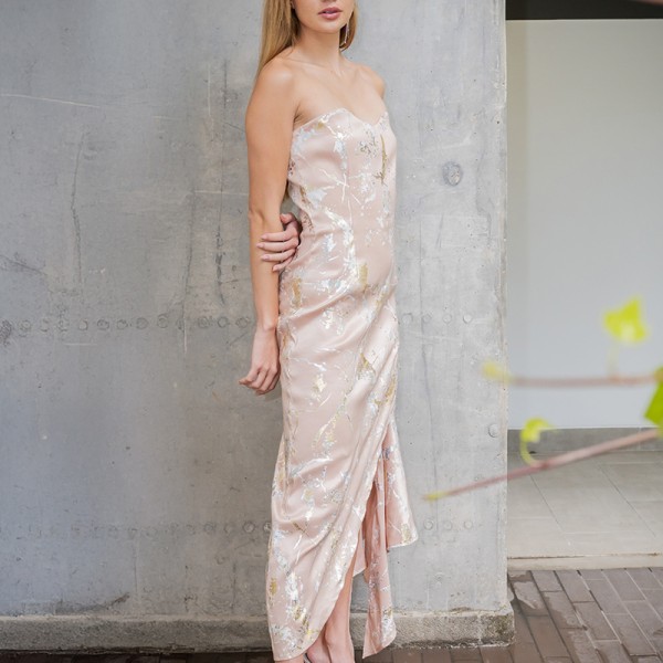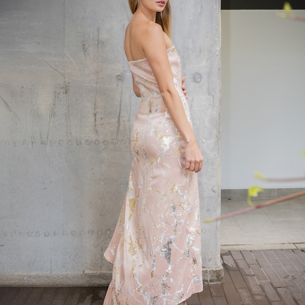 Vestido Renace maxi strapless asimétrico textura VRE2