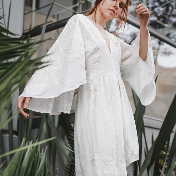 Vestido Trópica escote v maximanga asimétrico textura VT2